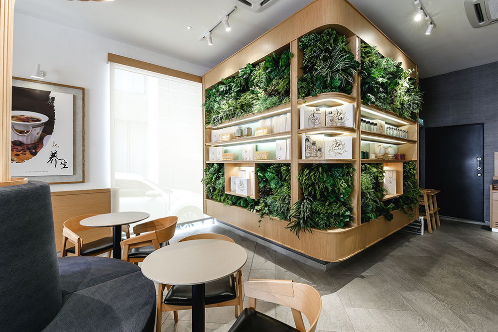Lastly, a floor-to-ceiling green wall merchant display was erected to bring in nature and complement the overall concept. Completed in 2017, the Birds Nest Secret is indeed a place where traditional Asian delicacies meet modern contemporary vibe.
