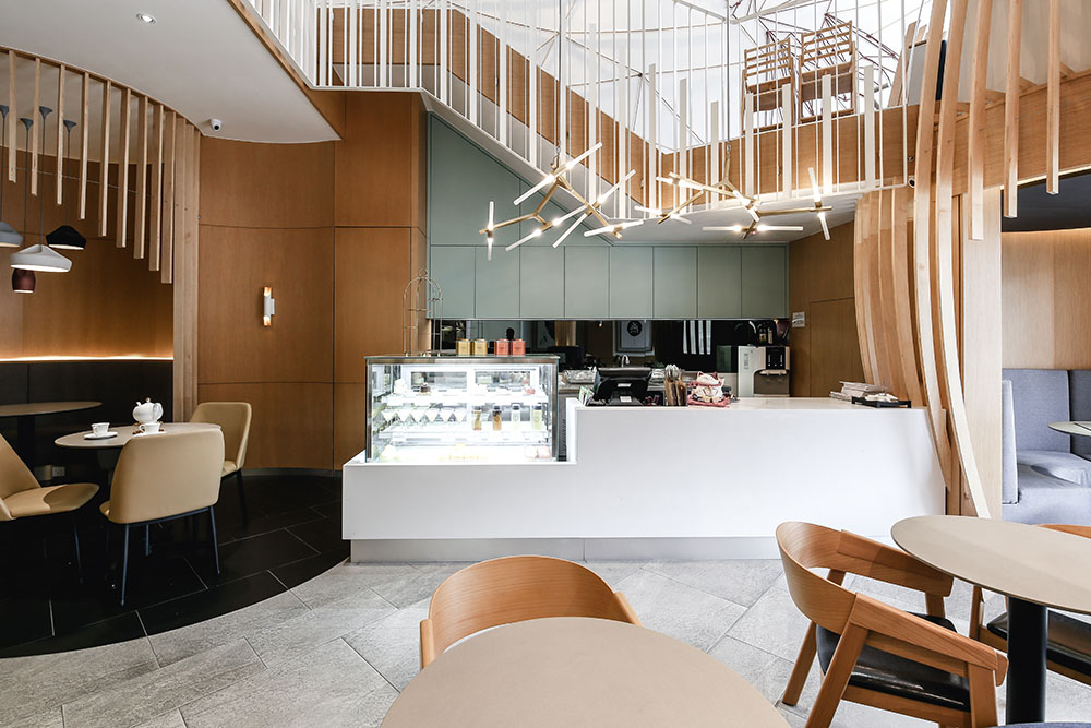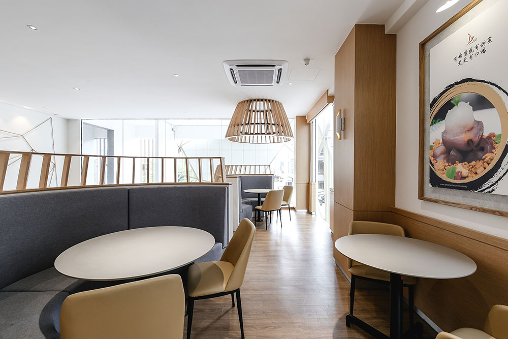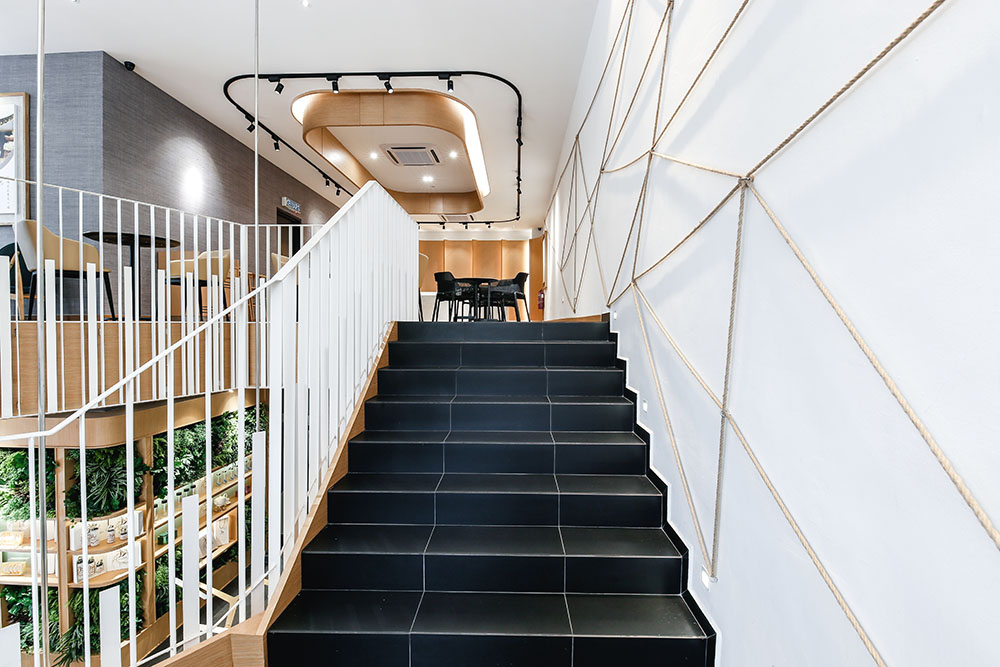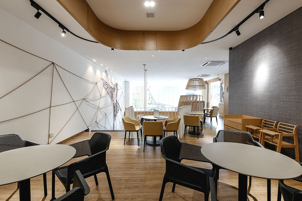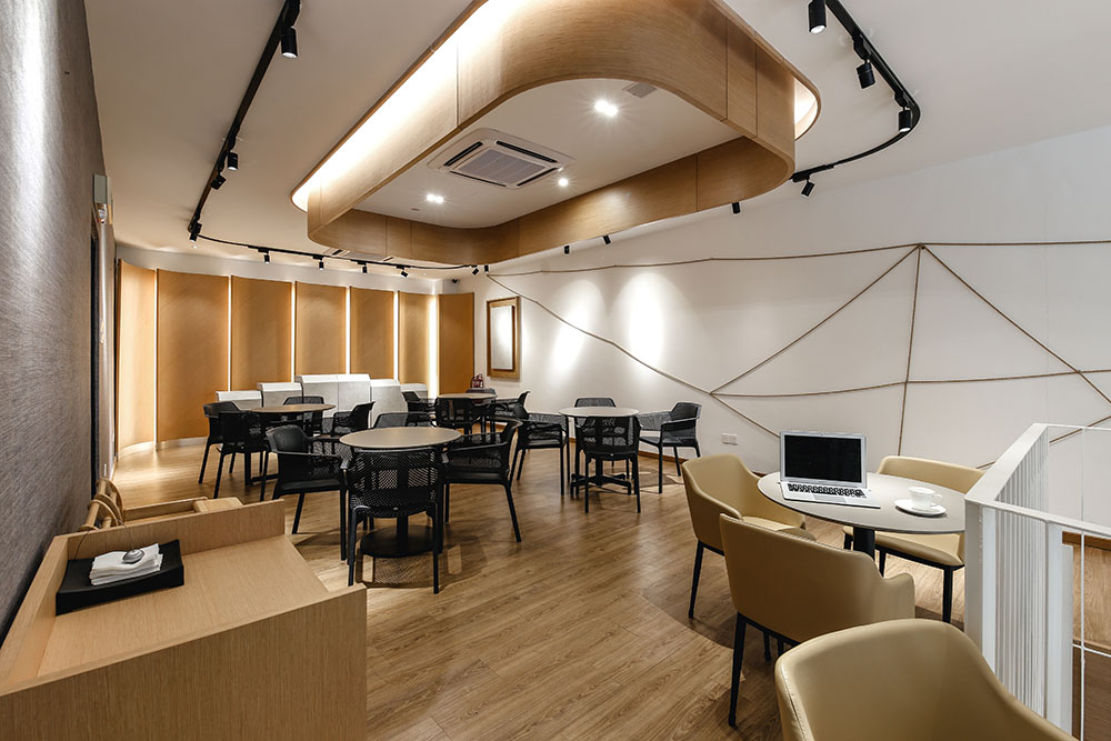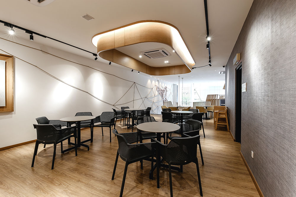 In maximising the use of space, the mezzanine level was extended to provide for more seating areas and enhance space integration within the void spaces, with the rear part designed to cater for events and functions. A staircase link was also added between the two levels near the entrance to circulate the flow of traffic.