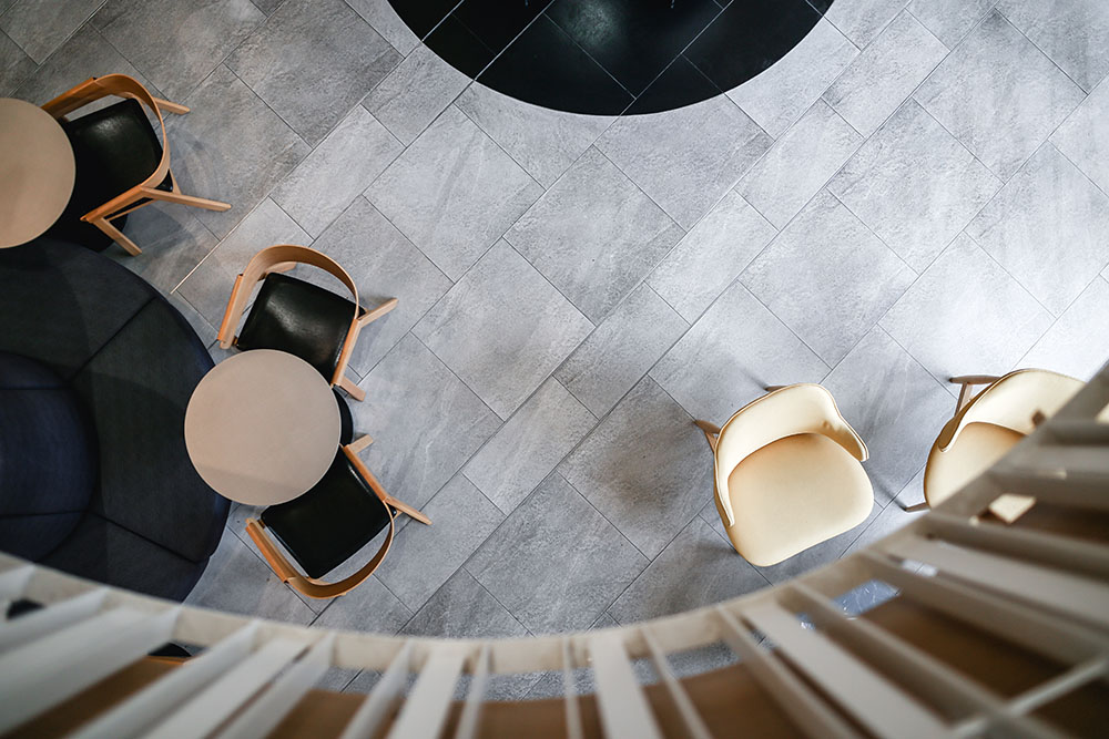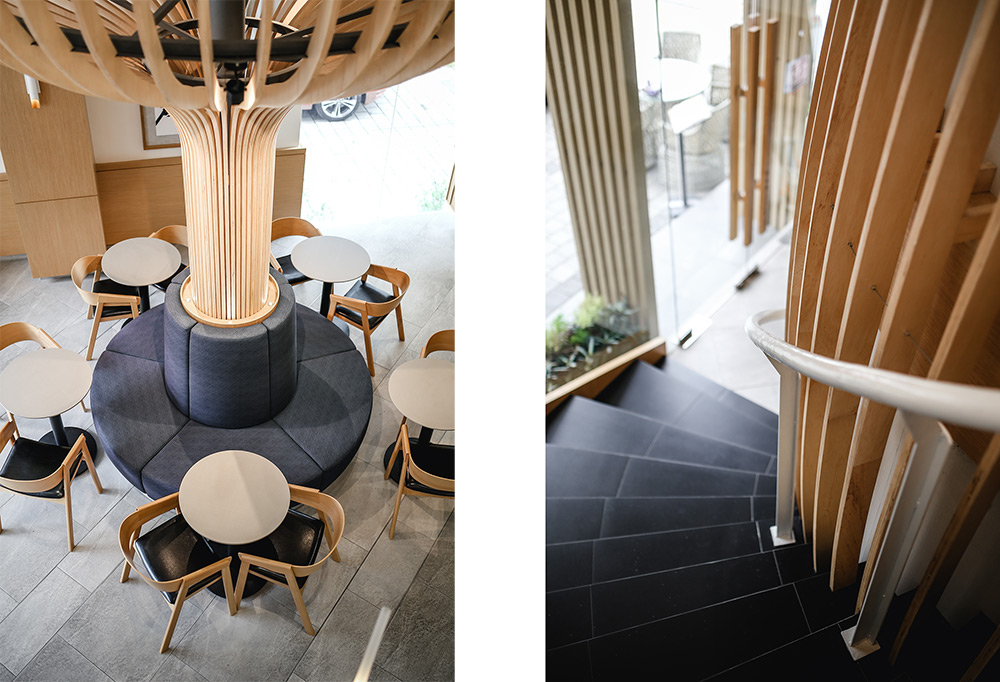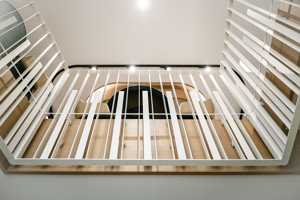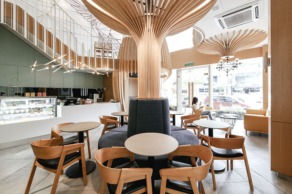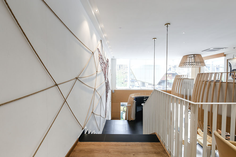 In maximising the use of space, the mezzanine level was extended to provide for more seating areas and enhance space integration within the void spaces, with the rear part designed to cater for events and functions. A staircase link was also added between the two levels near the entrance to circulate the flow of traffic.