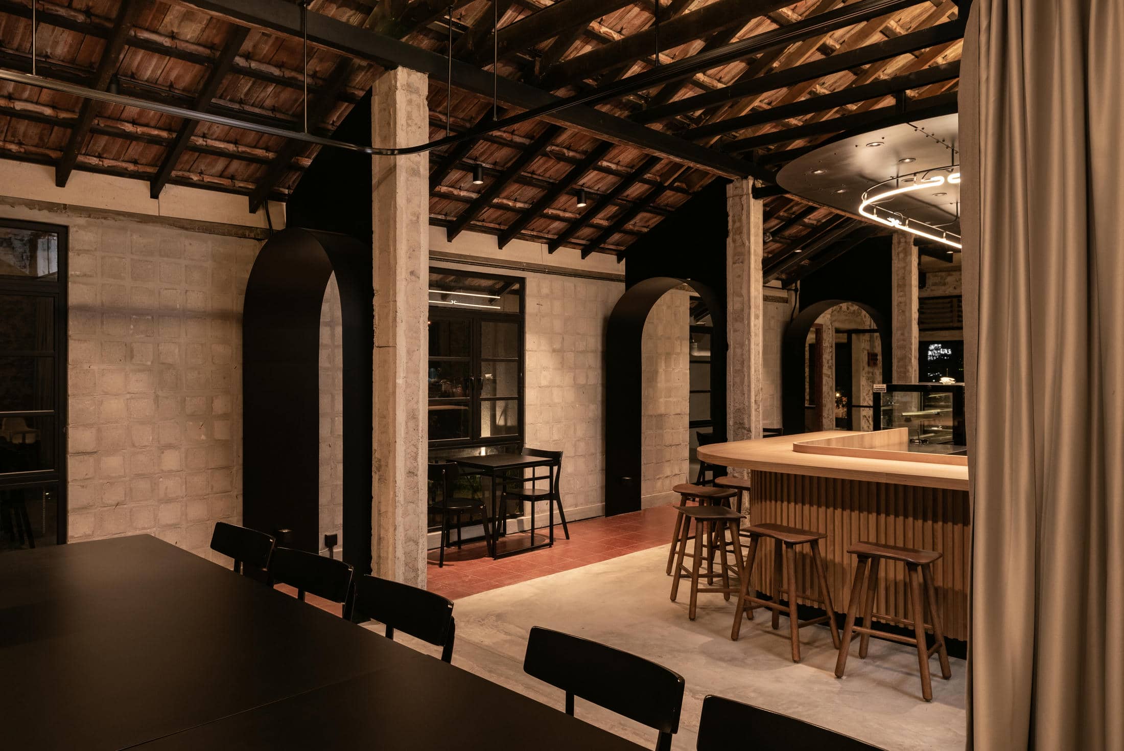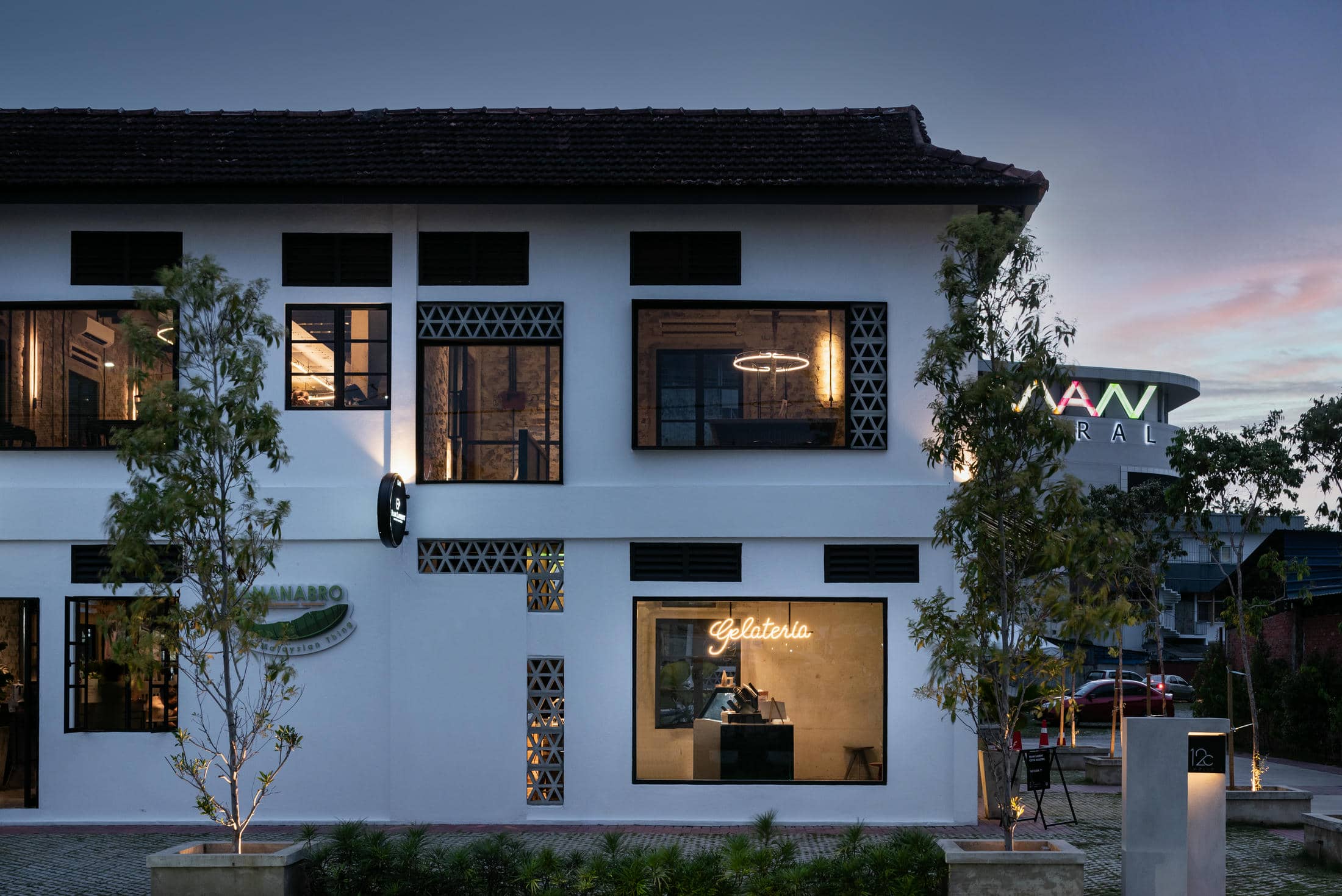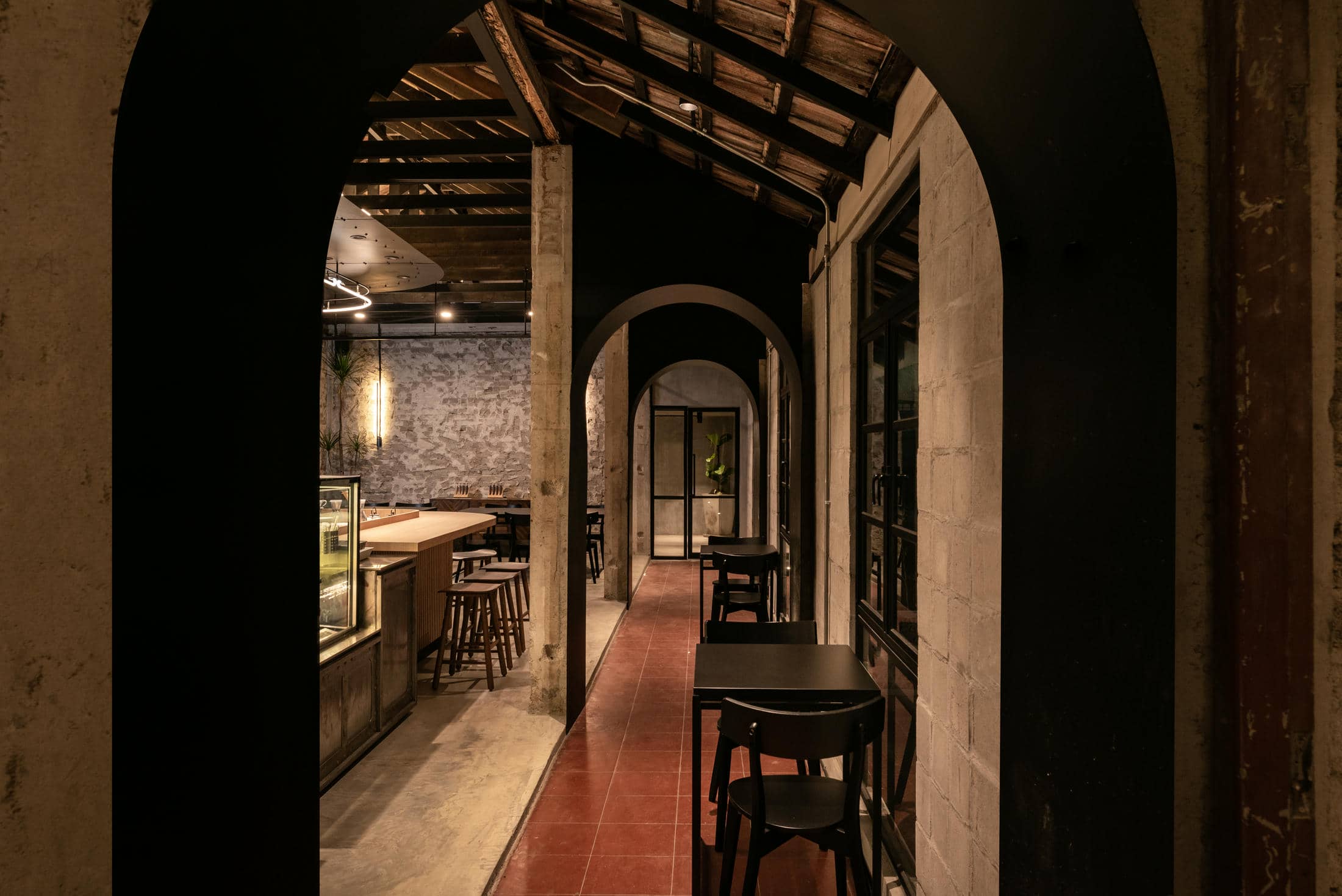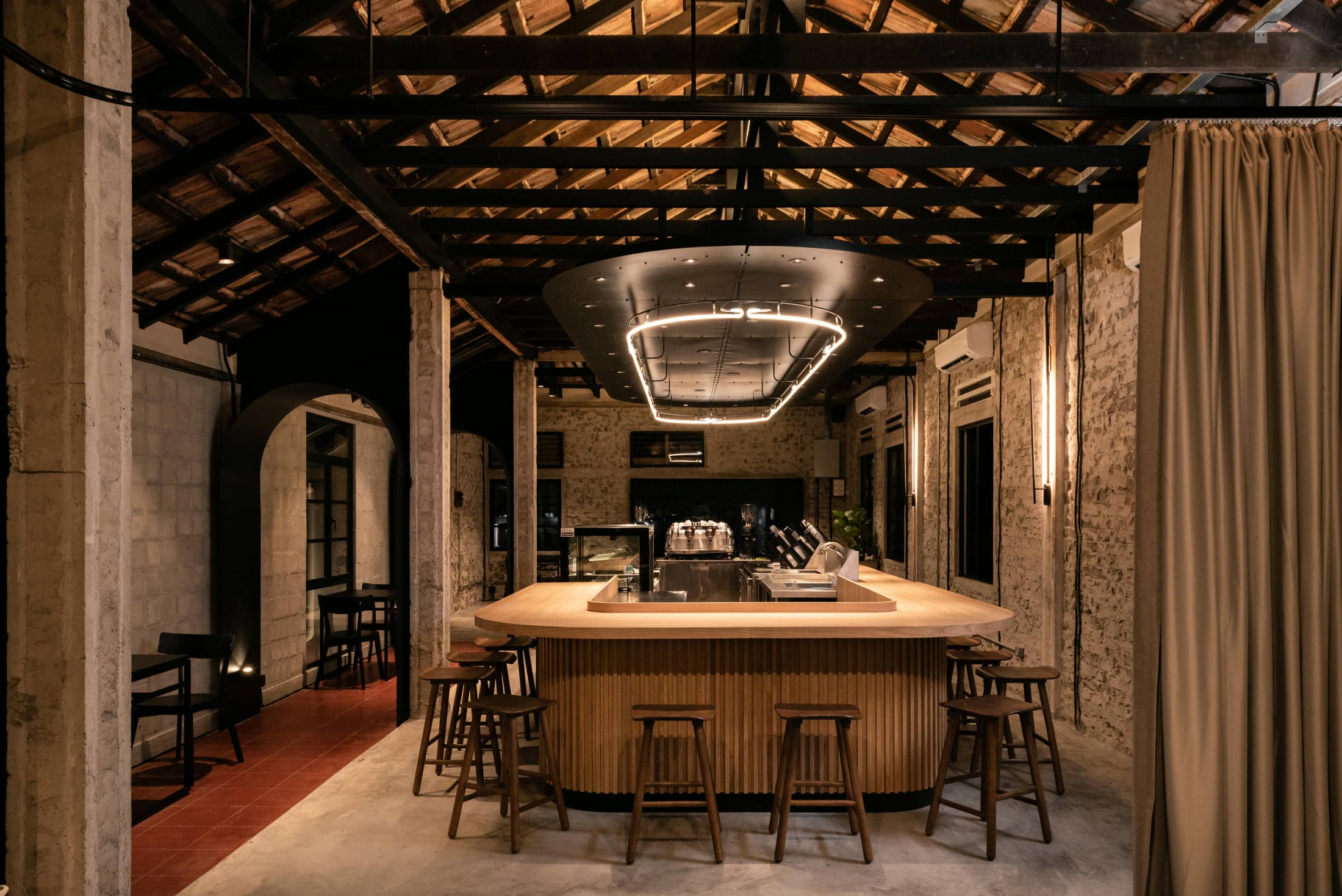 Frank Laurent X Lee Motors – Housed within a two-story detached building is this delicious café from Frank Laurent Coffee Roasters. Located underneath the flagship Frank Laurent coffee roasters storefront, this vibrant, simple, yet sleek gelateria is designed to quickly become the talk of the city in Alor Setar. Upstairs, the slick and silky blacks that make up the essence of Frank Laurent branding seep their way downstairs into this aromatic, open design café. With masculine design elements and industrial vibes throughout every inch of the Frank Laurent Coffee Roasters Café, we’ve created the perfect multifunction event space, complete with a full-service main kitchen in the back. This stunning example of history acts as the main first-floor entrance for the Frank Laurent coffee roasters. In addition, it features a grand, iconic staircase inviting visitors to follow the succulent aromas coming from above.