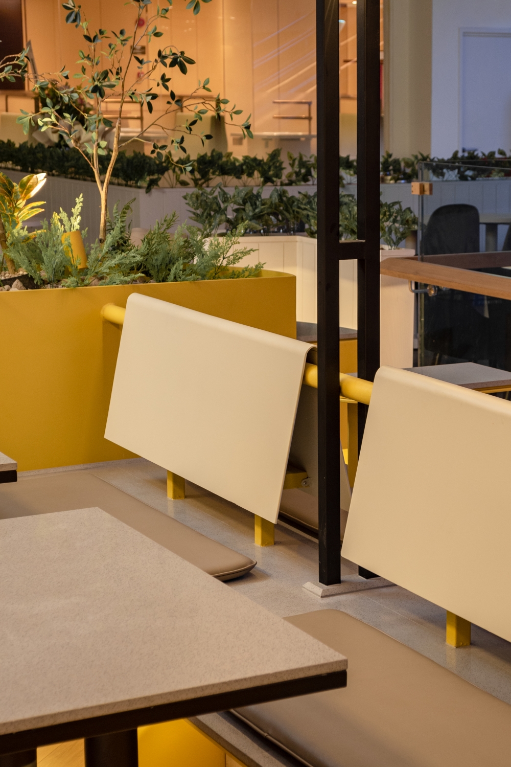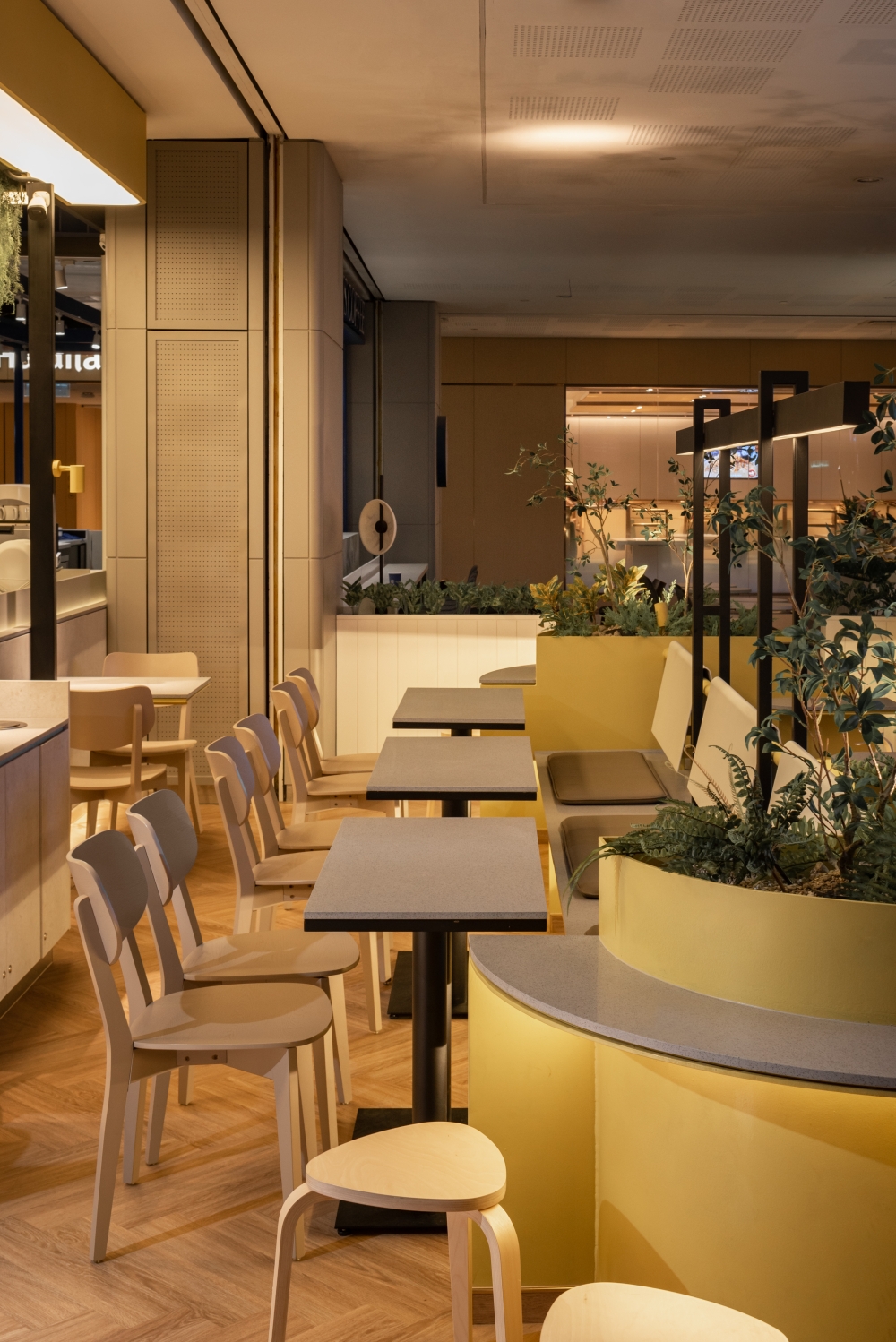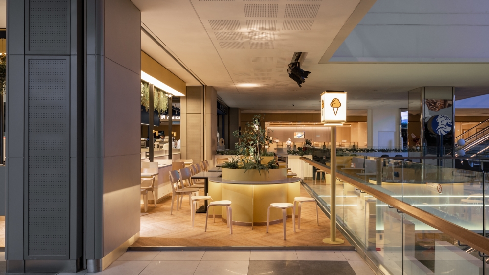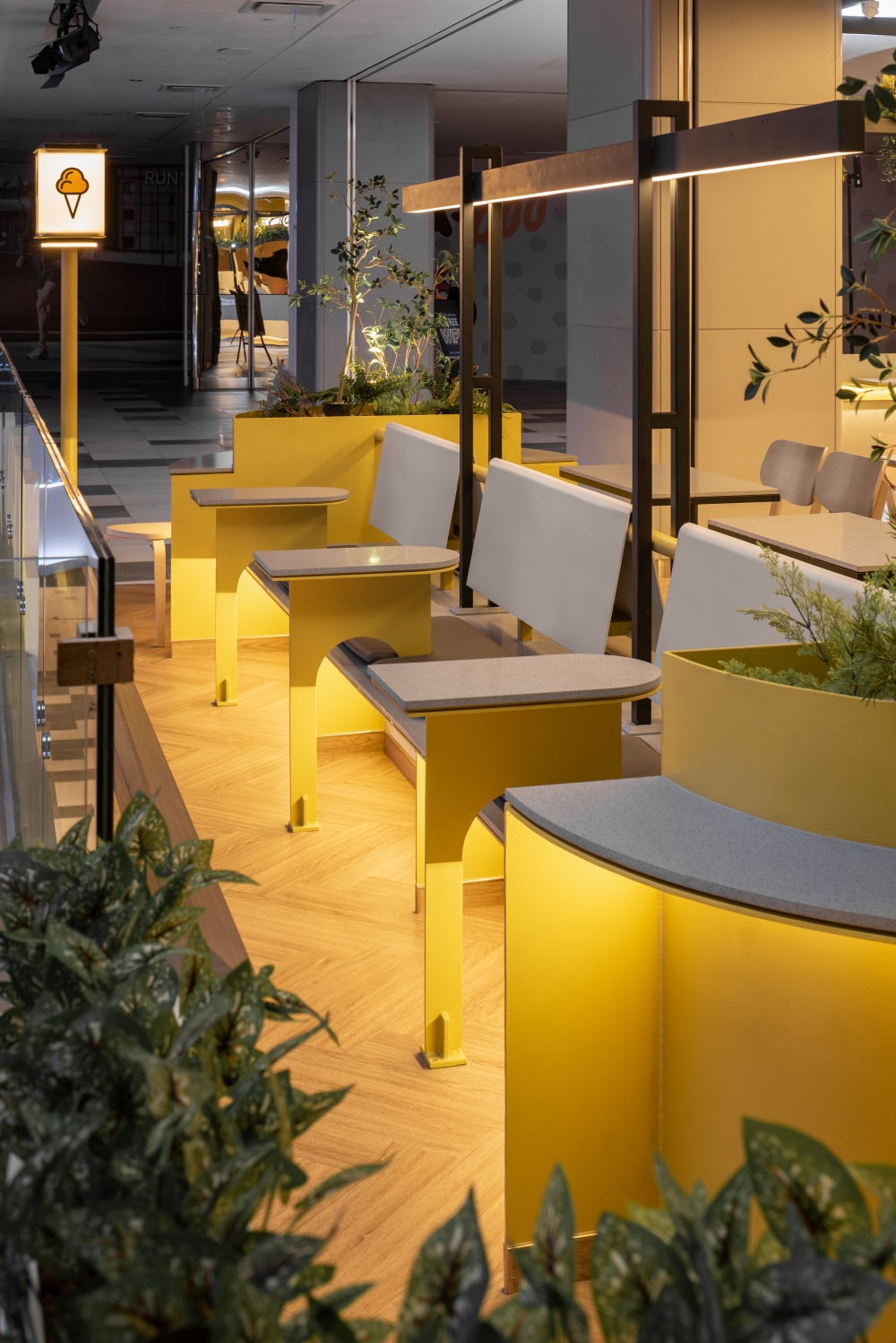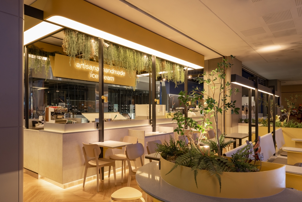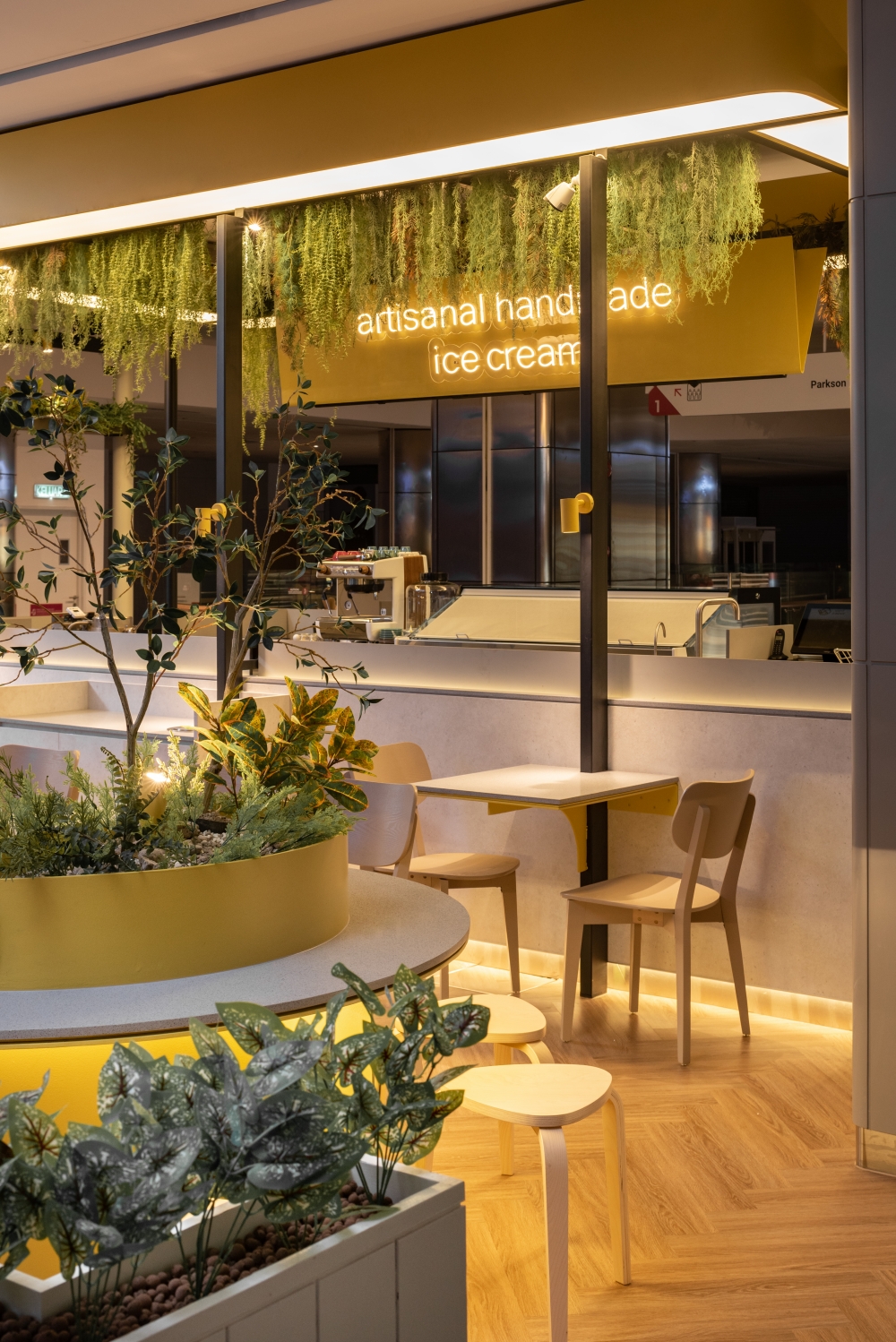 Step into a world of indulgence at Inside Scoop, your haven for delectable ice cream and irresistible cakes. This enchanting haven beckons you to explore a symphony of warmth and aesthetic allure, a place where dreams take shape in every delightful scoop and decadent slice. As you step inside, you’re enveloped in a world of sensory delight, bathed in the soft, buttery radiance of yellow lights that infuse the air with an irresistible, welcoming glow. Nature’s touch graces the ambiance with meticulously selected artificial plants, their vibrant emerald foliage dancing in harmonious contrast to the subdued hues of beige and light gray that define the space.