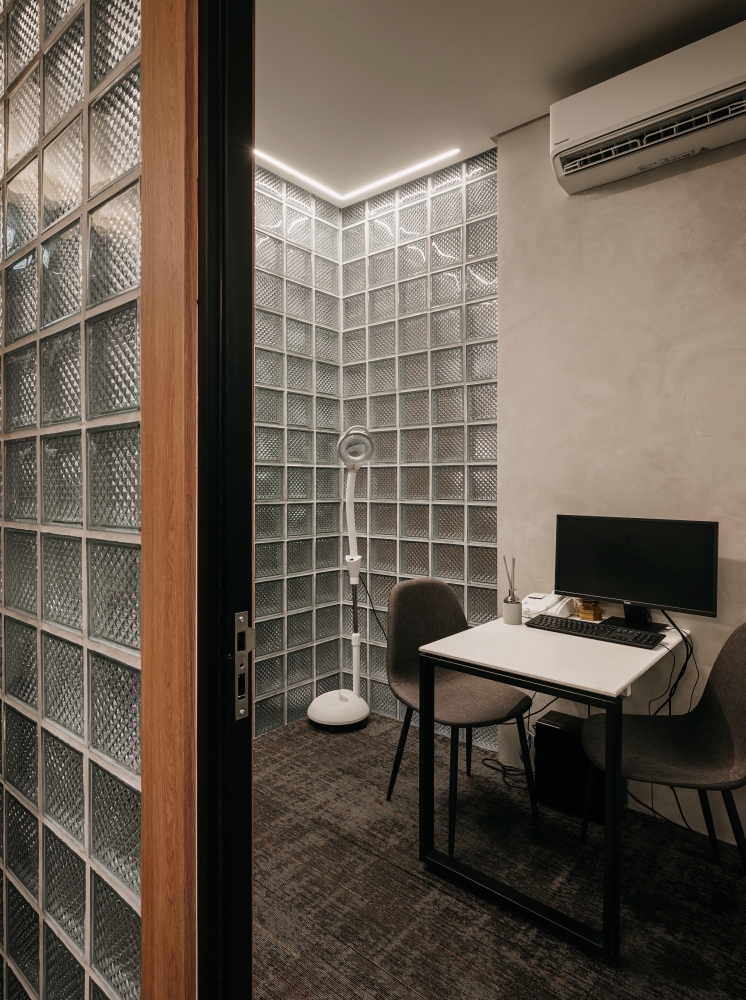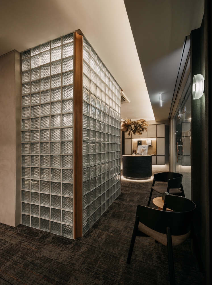 The element of the misty mountains came in perfectly for the design of the consultation room. Featuring a gradient glass wall, the room serves the purpose of a private space in a public setting through the translucent quality of the material. Absolutely fitting for a space where private and personalised conversations can take place between the service providers and their customers to offer the best of their tailor-made services.