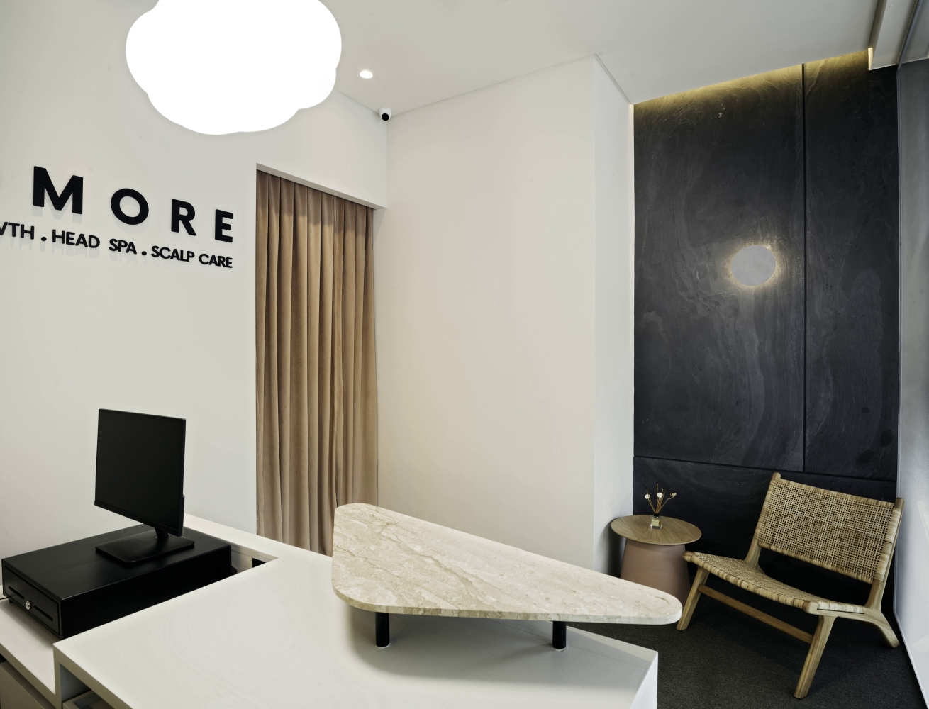 “Step into the enchanting world of So More, where the artistry of hair growth, the bliss of hair spa, and the science of scalp care converge in a sensory symphony. Our commercial haven is a sanctuary for yor tresses, adorned in palette of soothing beige, pristine white, bold black, and earthy khaki green, craeting an ambiance that cradles your senses.