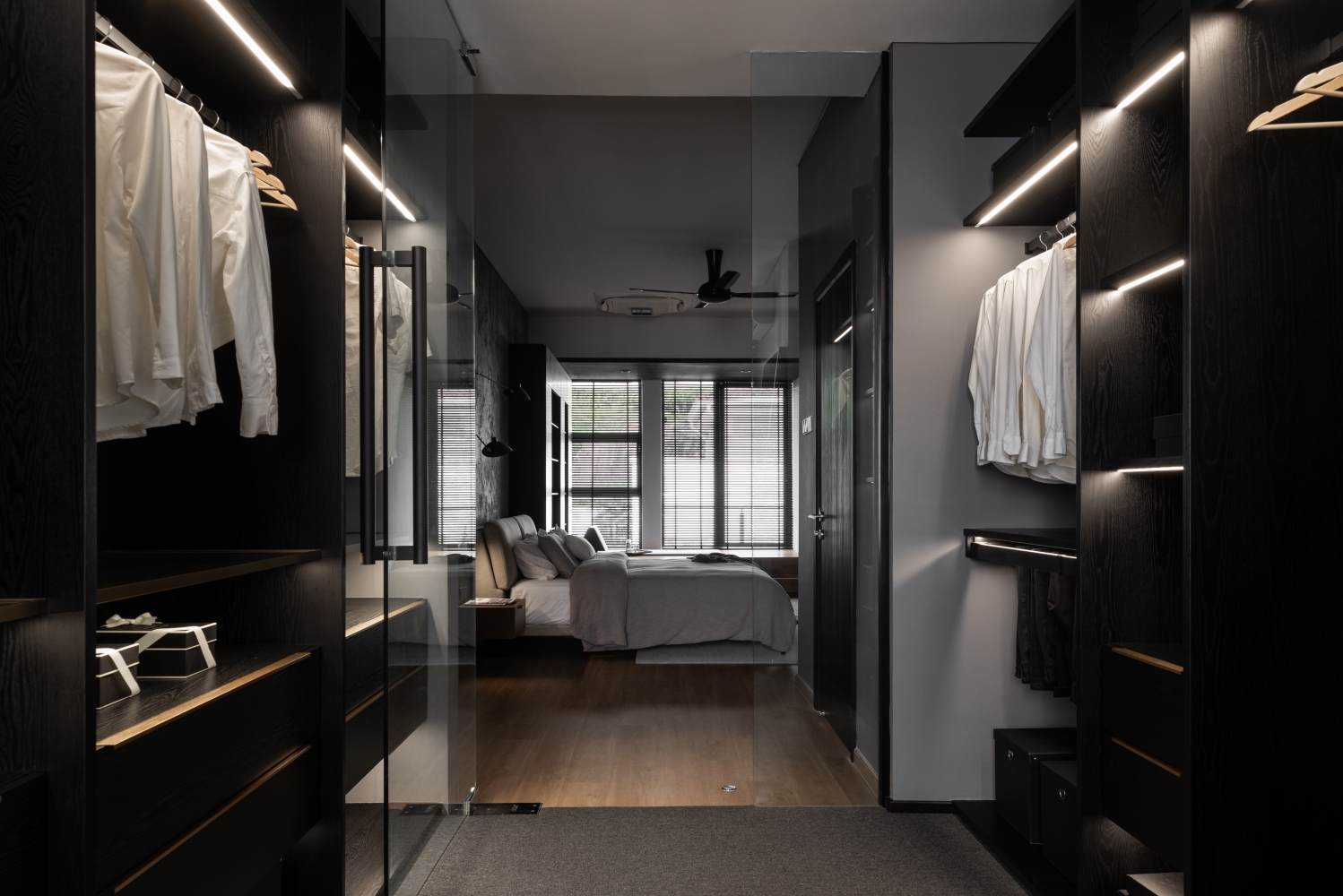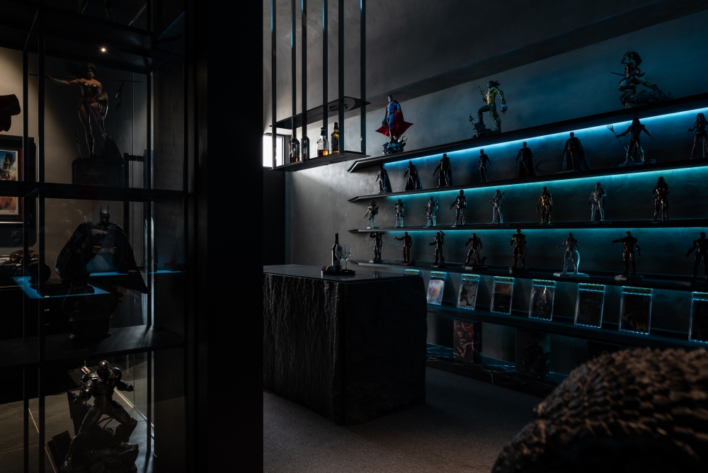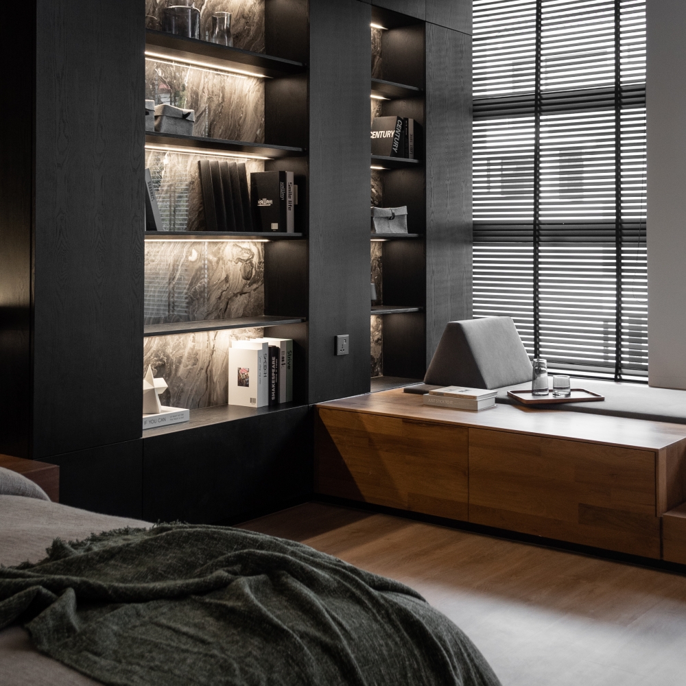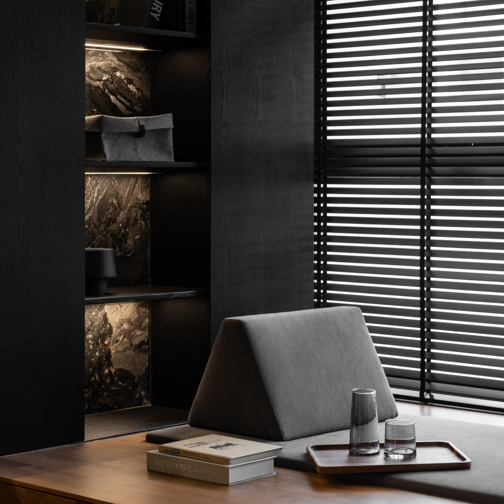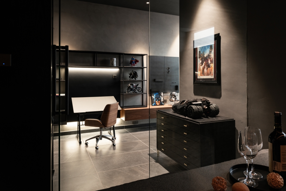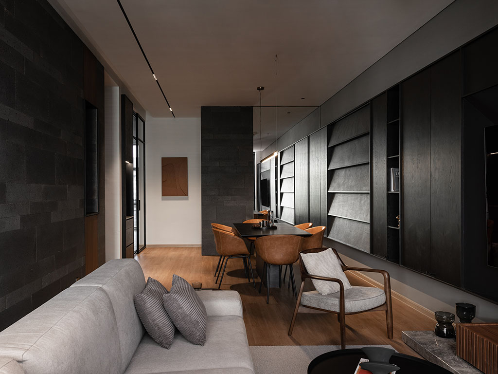 Kresidence, in Penang, is a home that is truly tailored to its owner. Minimalistic, bold and masculine with a touch of rustic elegance, is all bought together in each space through a consistent use of variety of stone, wood and metal elements. Stone elements are such as marble, lava stone and rough stone are used in combination with black wooden details and metallic elements in the living room and kitchen designs. Two unique rooms featured in this project stand out from the other spaces while still managing to work harmoniously well as a whole. Daughter’s room showcases pops of colours not seen in most parts of the house; however, the use of colours and warm lighting cohesively tie it in. Like his daughter, the man of the house also has his private area- the mancave where he can go to wind down and focusing his hobbies. Housing all his hobbies and artistic endeavors, space is maximized by creating hidden storage spaces that are made available and useful as they are aesthetically pleasing. In this space where colours and elements seem overwhelmingly earthy, an ample sense of space and lighting becomes key to brightening up the space. Full glass panels and windows allow for a sense of privacy yet possess permeability of interaction and light. Several structures in the house have also been made to open up the space to more natural light and the surrounding nature.