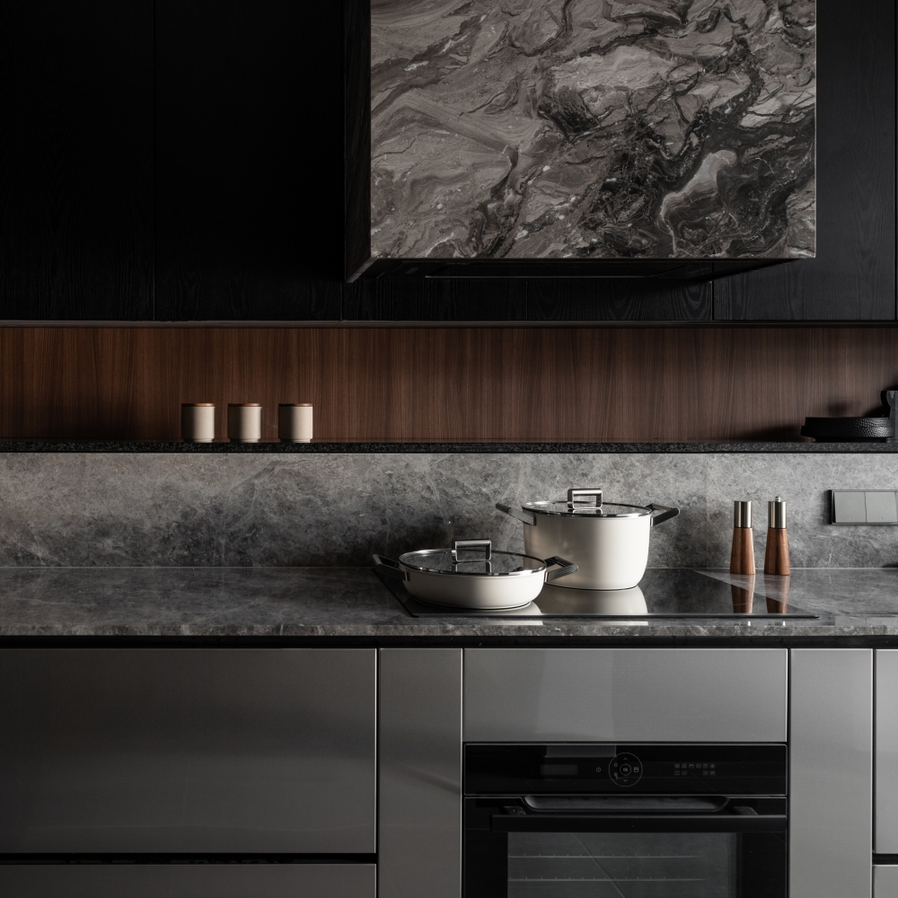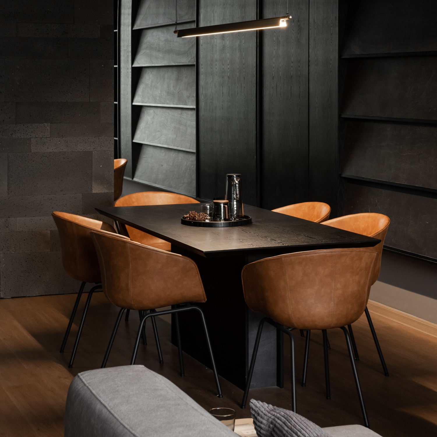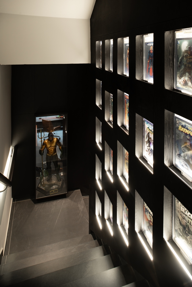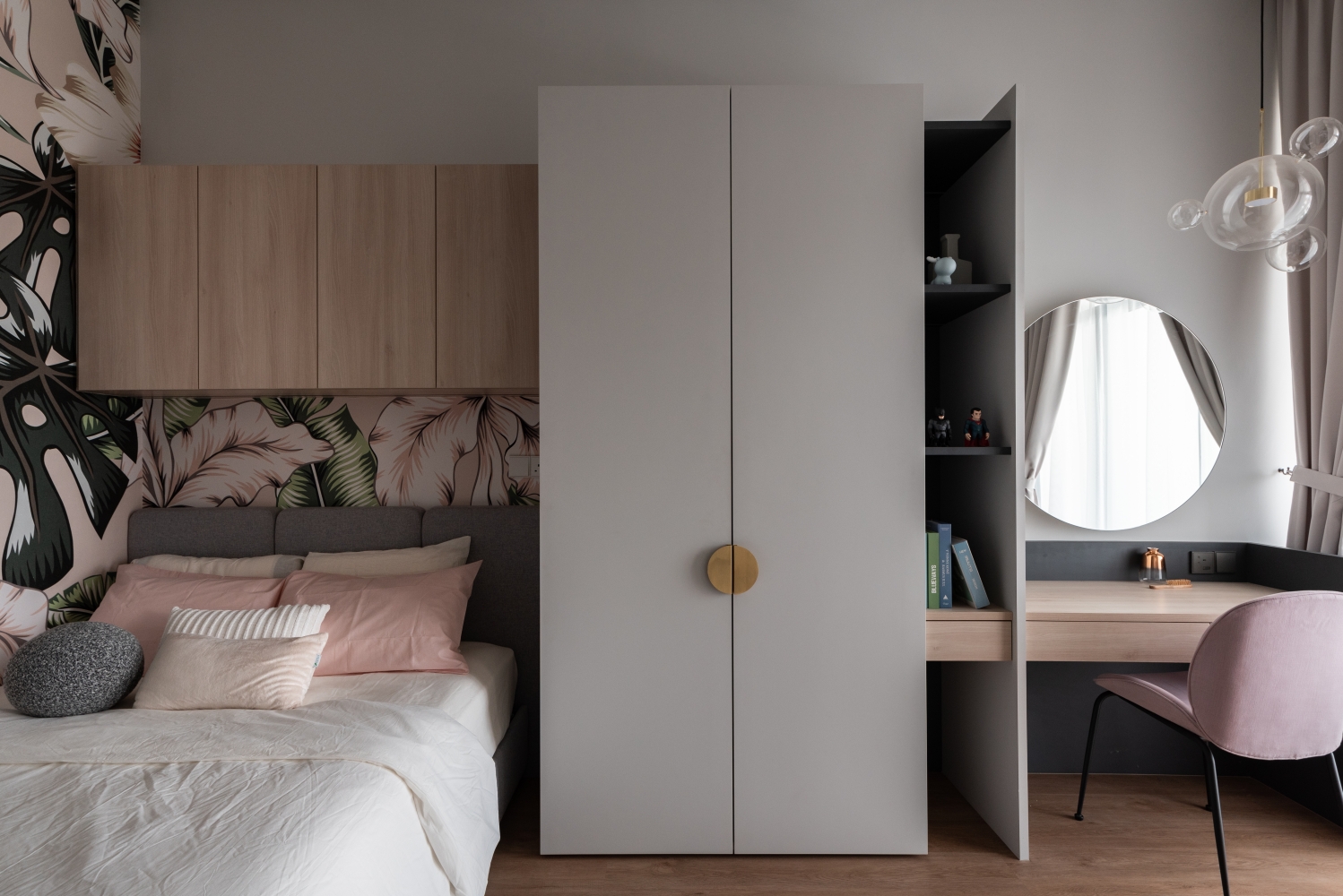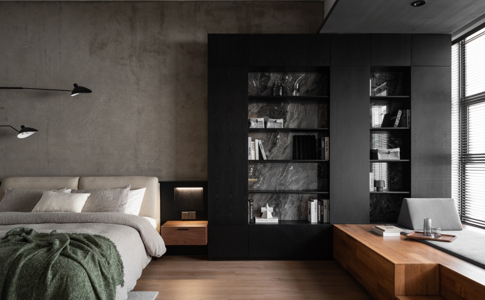 Kresidence, in Penang, is a home that is truly tailored to its owner. Minimalistic, bold and masculine with a touch of rustic elegance, is all bought together in each space through a consistent use of variety of stone, wood and metal elements. Stone elements are such as marble, lava stone and rough stone are used in combination with black wooden details and metallic elements in the living room and kitchen designs. Two unique rooms featured in this project stand out from the other spaces while still managing to work harmoniously well as a whole. Daughter’s room showcases pops of colours not seen in most parts of the house; however, the use of colours and warm lighting cohesively tie it in. Like his daughter, the man of the house also has his private area- the mancave where he can go to wind down and focusing his hobbies. Housing all his hobbies and artistic endeavors, space is maximized by creating hidden storage spaces that are made available and useful as they are aesthetically pleasing. In this space where colours and elements seem overwhelmingly earthy, an ample sense of space and lighting becomes key to brightening up the space. Full glass panels and windows allow for a sense of privacy yet possess permeability of interaction and light. Several structures in the house have also been made to open up the space to more natural light and the surrounding nature.
