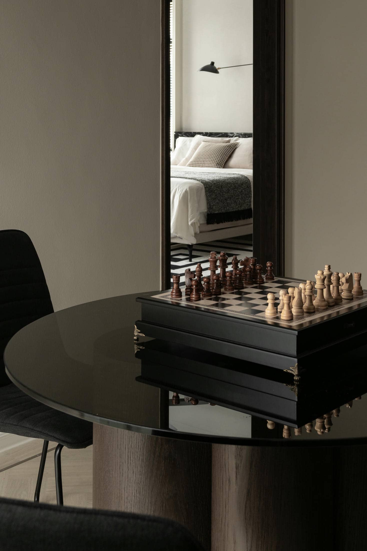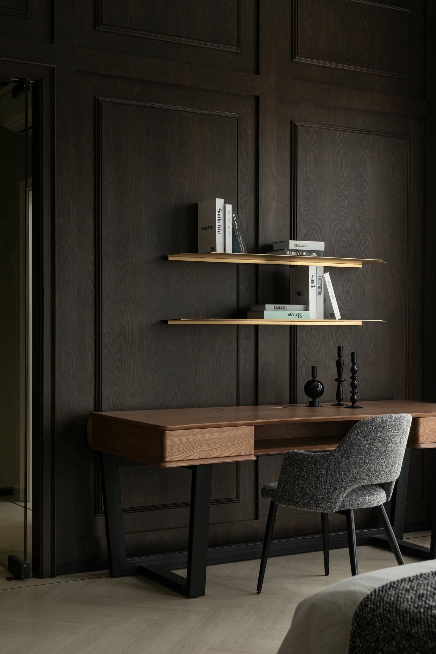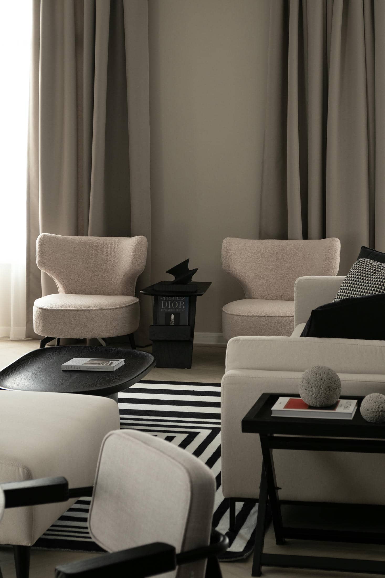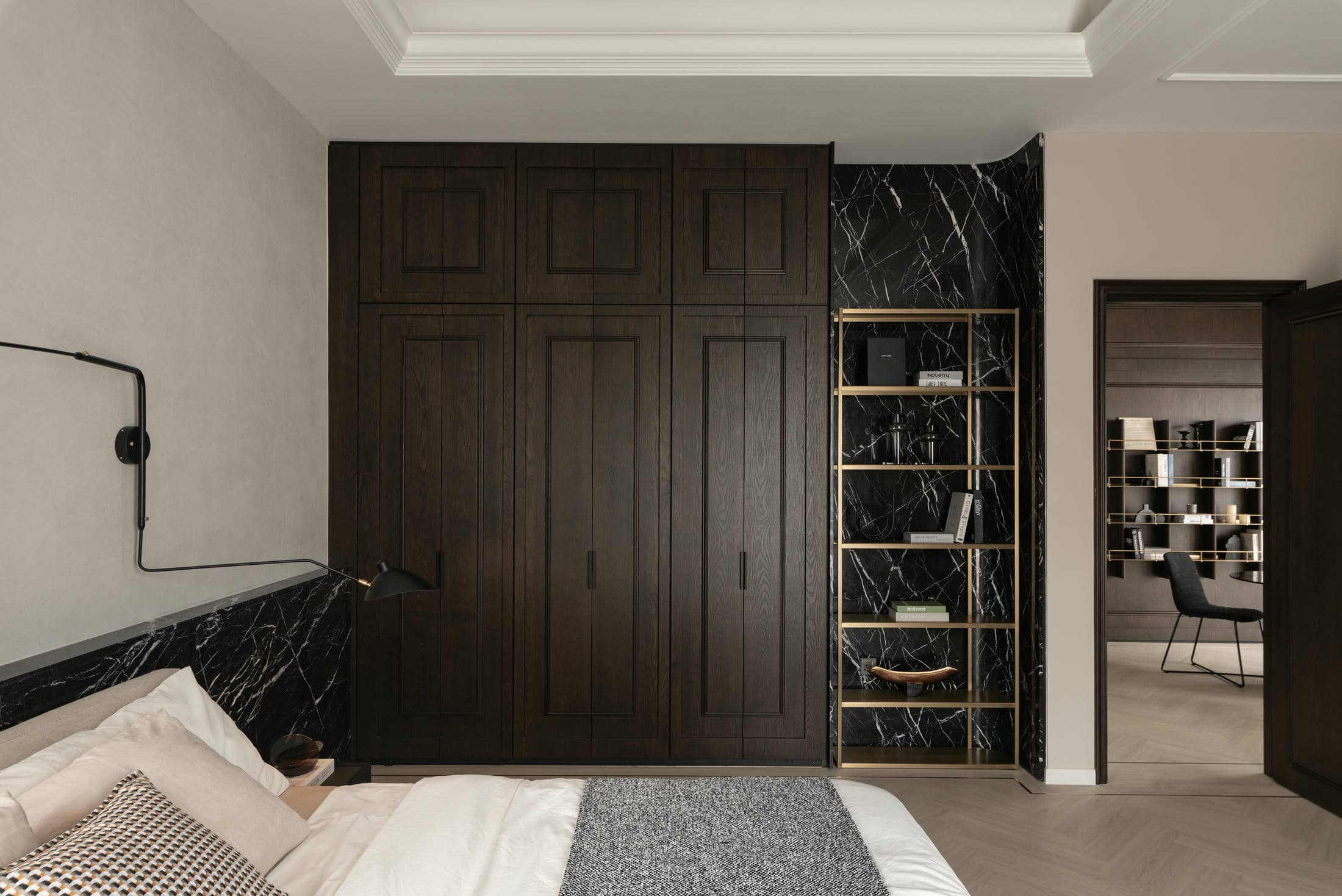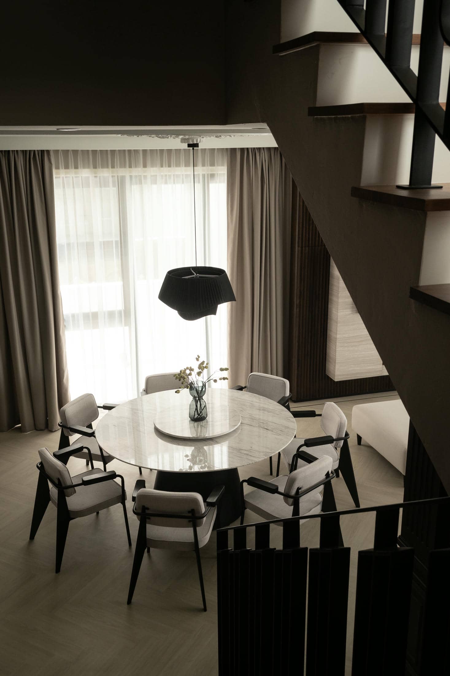 “Time Honoured Modernity” seamlessly merges timeless elegance and luxury with modern simplicity, creating spaces exuding dominance, power, and generational status. It crafts a union between classical beauty and contemporary chic, transforming the entire home into a sanctuary of elevated living. At its core, this signature style blends classical grandeur with sleek modern aesthetics, creating an atmosphere of refined elegance while preserving modern design simplicity. A curated palette of neutral and earthy tones wraps the surroundings, allowing classical and modern elements to coexist harmoniously. Custom and store-bought modern furnishings, such as Nero Black Marble walls and White Calacatta Marble dining tables, infuse opulence into every corner. These choices boast clean lines and minimalist designs, enhancing the play of light throughout the home. The integration of concave designs in elements like the kitchen island, dresser, and ceiling, along with wainscot classic detailing, PVD custom-made stainless-steel racks, ornate moldings, classical columns, arches, and soft, natural textures, introduce depth and visual intrigue without overwhelming the contemporary design. Chaos Design Studio’s philosophy revolves around the artful integration of intricate classical elements, merging classical beauty with modern simplicity. Meticulous craftsmanship and attention to detail cast a spell of dominance, power, and high status throughout the entire home.
