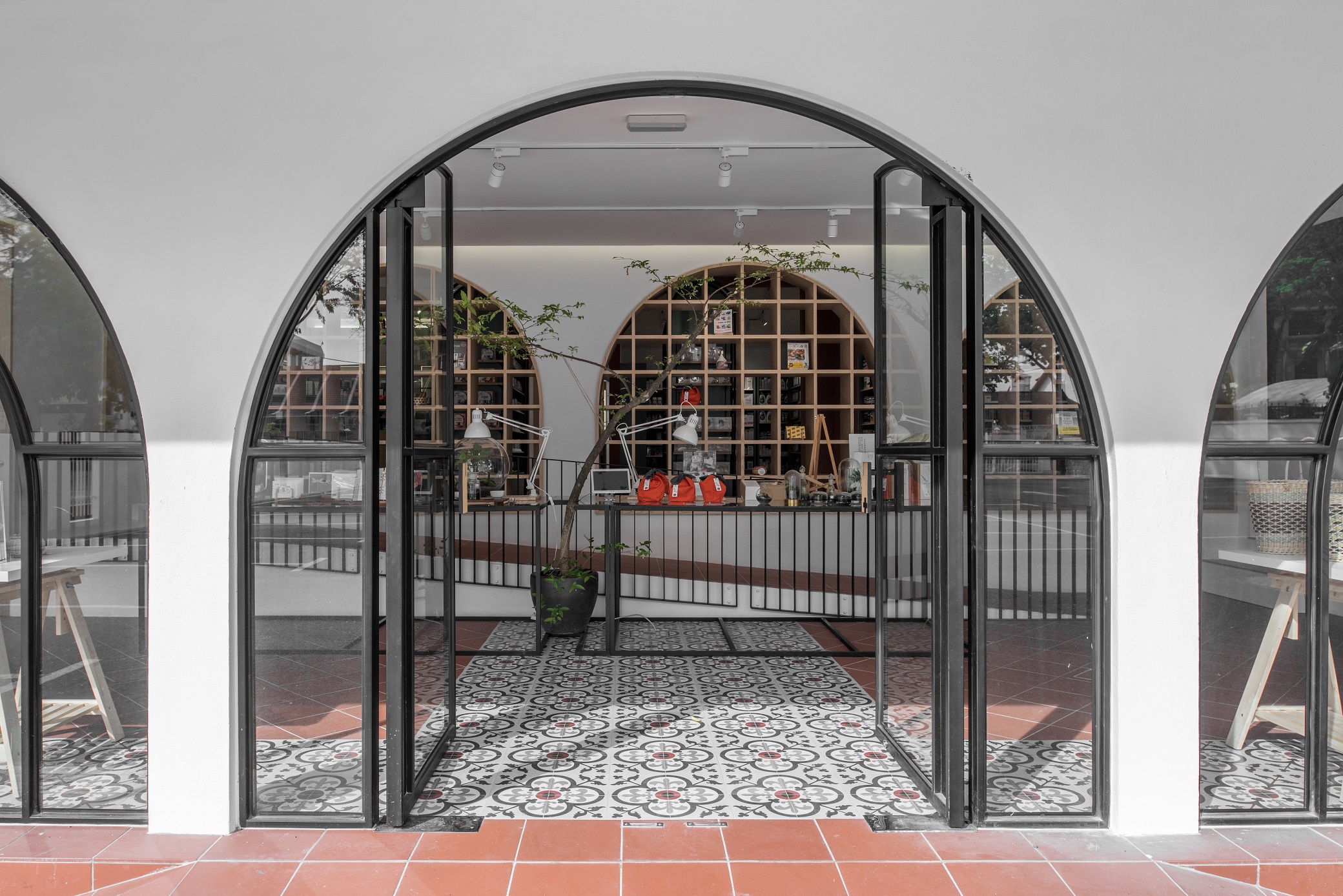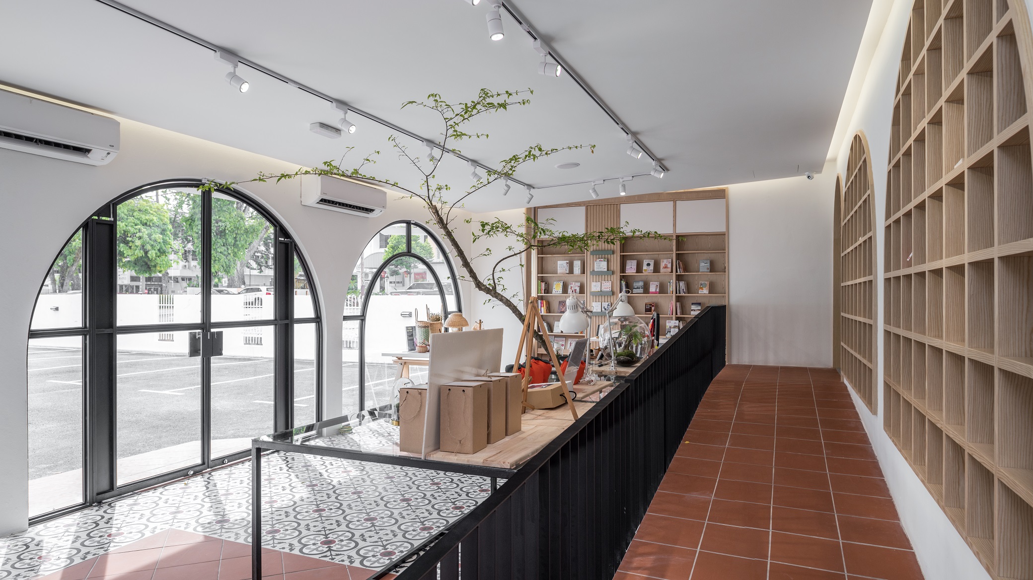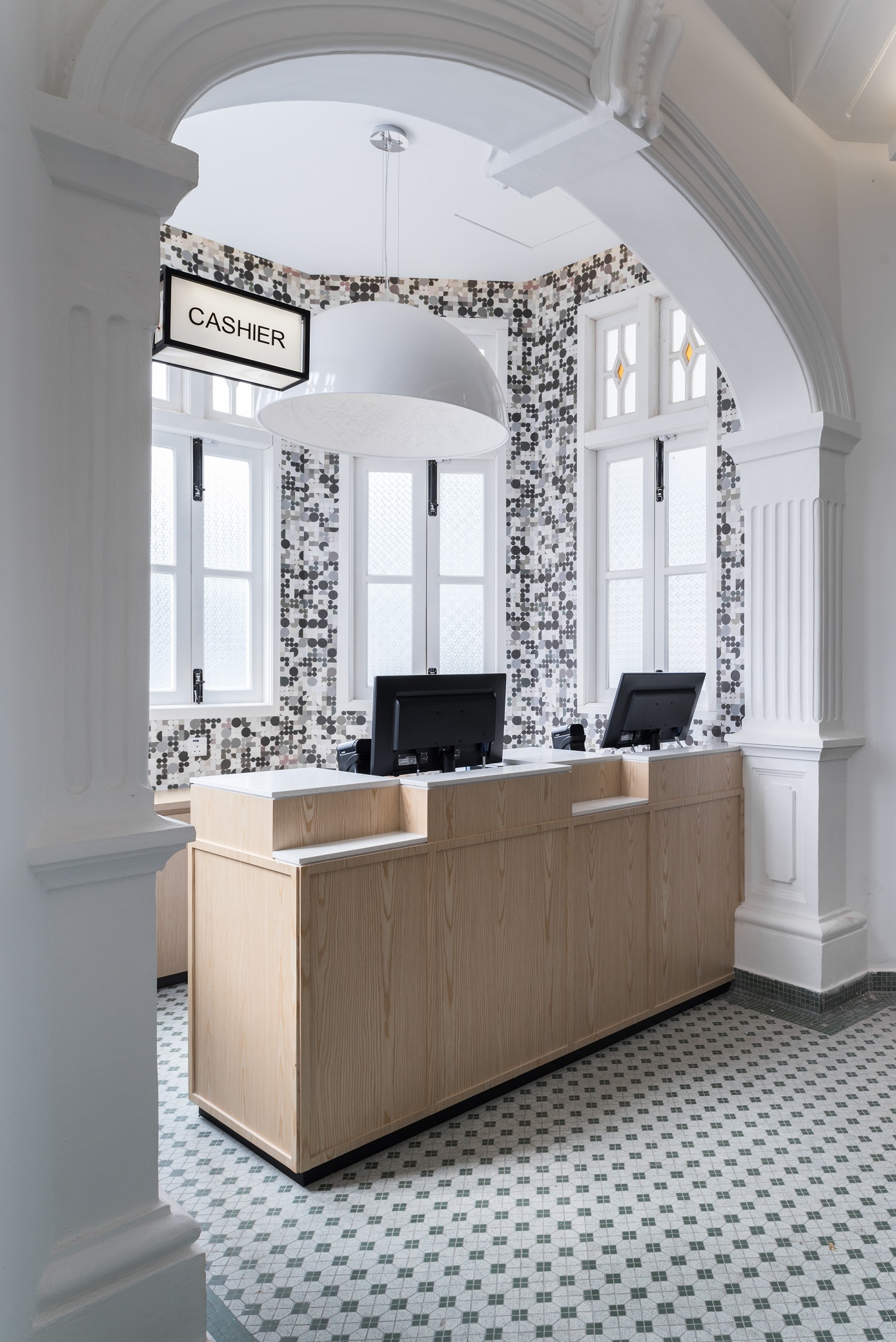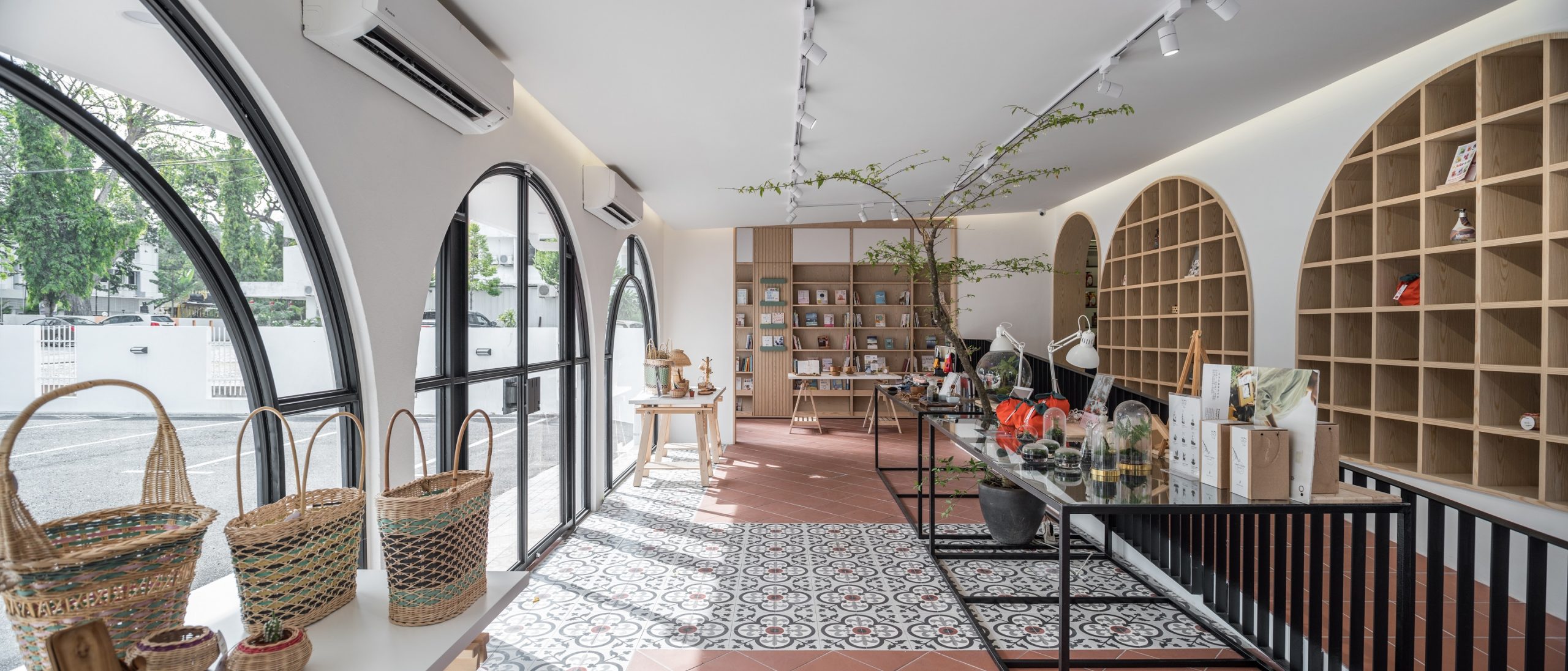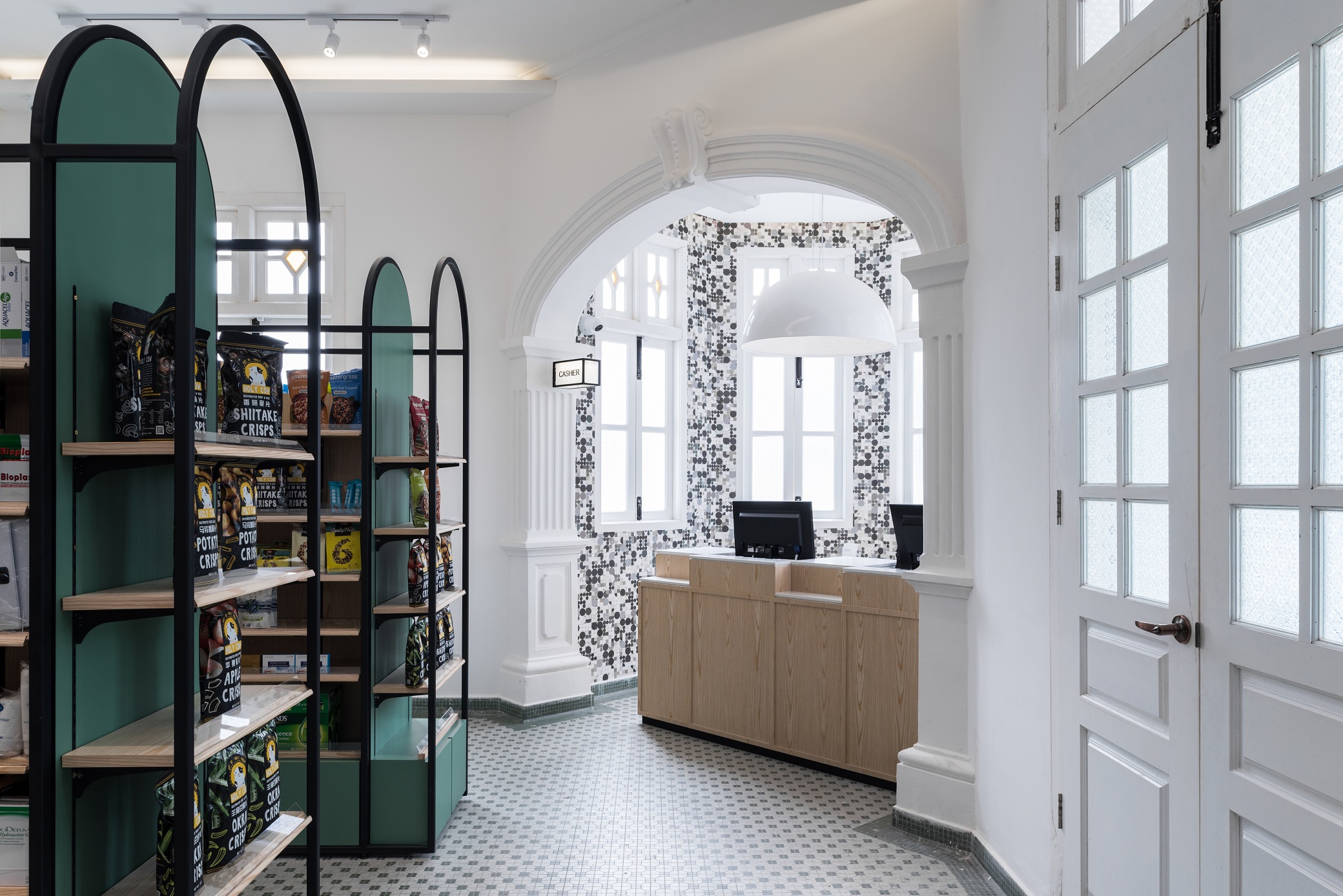 Wellings Pharmacy is a trusted name in the pharmaceutical industry and medical tourism with the dual aim of serving the wellness needs of the people and utilizing holistic applications to encourage the adoption of healthier lifestyles. On Penang island itself, Wellings Pharmacy has quite a number of branches scattered around the town area, one of which is named Wellings No.5. Gazetted as a heritage mansion, the existing empty building comes with distinctive colonial architecture with arched elements and exquisite cornices. By building on and re-using these elements in the design, we derived on a unique concept that is a blend of rich heritage and modern vibes. In breaking the stereotype that pharmacies are dull and monotonous, Wellings No.5 houses several divisions, seeking to provide an opportunity for creative individuals and start-ups to have an actual merchandising spot and to be able to, in their individual specialty, provide a sense of healing for all visiting consumers.